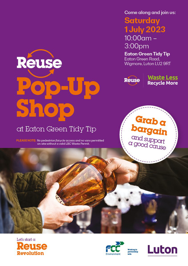 Eaton Green Tidy Tip will host Luton’s first pop-up re-use shop on Saturday 1st of July.
